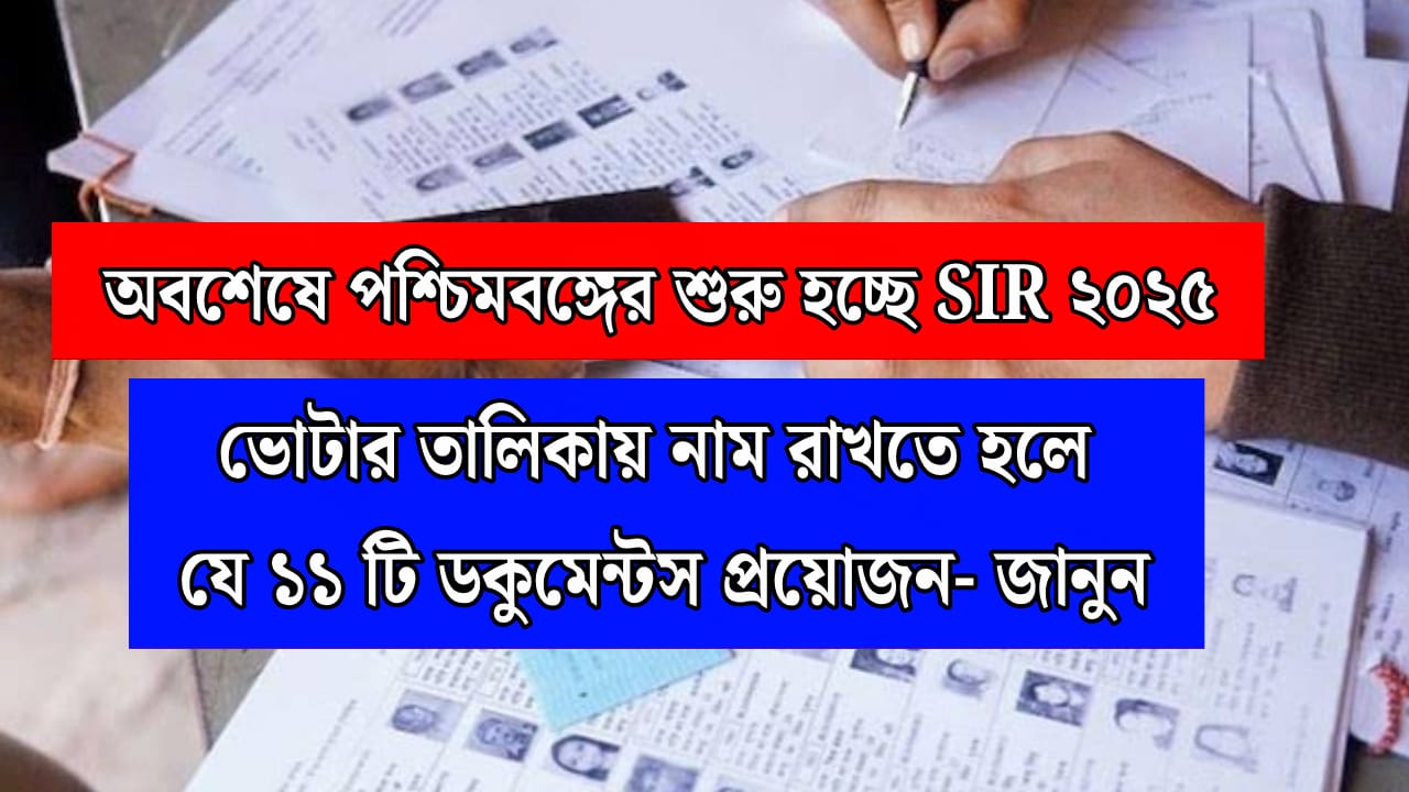 দীর্ঘদিন ধরে চলছিল বিতর্ক। অবশেষে বাংলায় শুরু হতে যাচ্ছে নিবিড় ভোটার তালিকা সংশোধন(SIR) ২০২৫। ভারতীয় গণতন্ত্রে ভোটার তালিকায় নাম থাকা শুধুমাত্র ভারতের নাগরিকত্বের প্রমাণ নয় বরং এটি ভোটাধিকার এবং ভারতের দায়িত্ববান নাগরিক ও রাজনৈতিক প্রতিনিধিত্বের মূল ভিত্তি। তাই ভোটার তালিকার নিবিড় ভাবে পর্যবেক্ষণ ও সংশোধন করা হবে। আপনি যদি একজন পশ্চিমবঙ্গের বাসিন্দা হয়ে থাকেন তাহলে অবশ্যই আপনার জেনে নেওয়া দরকার কি কি ডকুমেন্টস আপনার থাকতে হবে। সাম্প্রতিক সময়ে আমাদের পার্শ্ববর্তী রাজ্য বিহারে হয়েছিল ‘বিশেষ নিবিড় সমীক্ষা’ বা SIR (Special Intensive Revision), যা দেশের রাজনৈতিক মহলে তীব্র প্রতিক্রিয়া সৃষ্টি করেছে। এবার এই প্রক্রিয়া শুরু হতে যাচ্ছে পশ্চিমবঙ্গে, যার মাধ্যমে ভোটার তালিকা থেকে মৃত ব্যক্তির নাম বাদ প্রয়োজনীয় নথি যাচাই এবং ভুয়া নাম মুছে ফেলা ও যাদের নতুন নাম সংযোজন করা হয়েছে তাদের যথাযথ পর্যবেক্ষণ করা হবে।